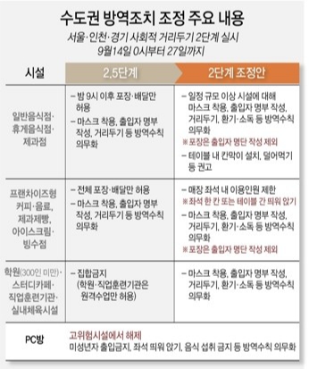 #일반음식점 #휴게음식점 #제과점 #프랜차이즈 #커피점 #제과점 #빙수점 #학원 #스터디카페 #직업훈련기관 #직훈 #실내체육시설 #pc방 #서울 #인천 #경기 #사회적거리두기 #2단계 #실시 #주요 #내용