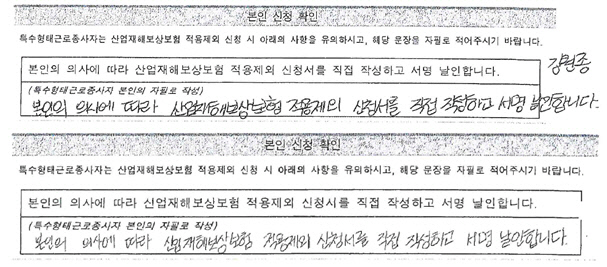 '과로사' 택배노동자의 '산재보험 적용제외 신청서' 대필된 정황