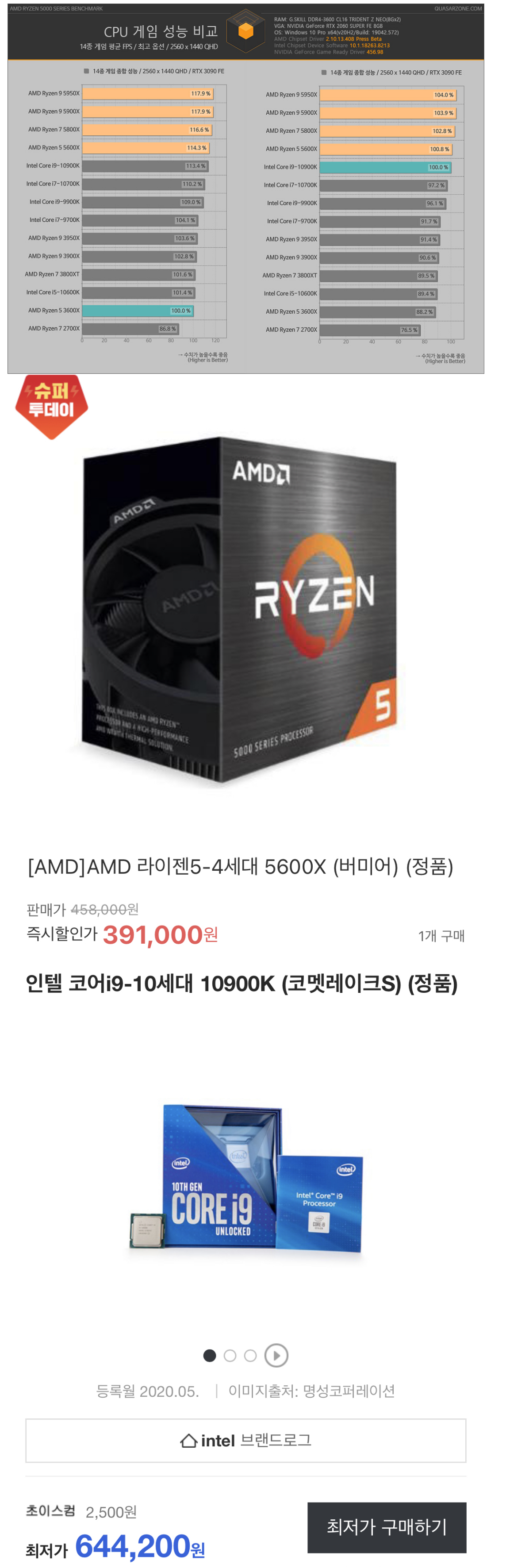 가뿐하게 게임 성능에서도 인텔 cpu를 눌러버린다.