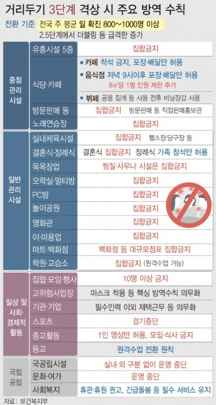 사회적 거리두기 2단계 2.5단계 3단계 차이