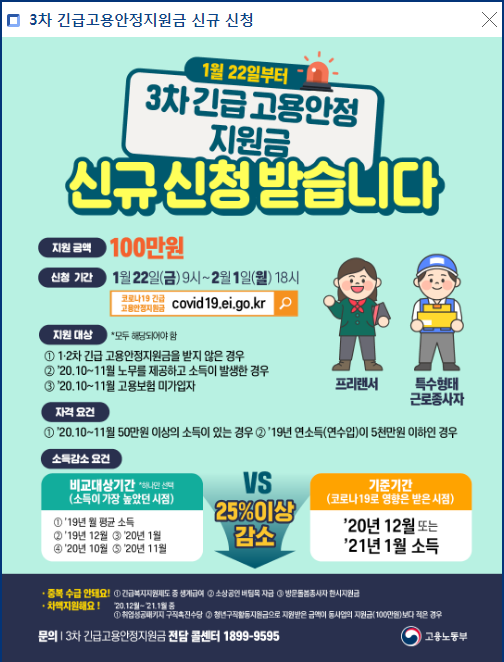 코로나19 특수고용직 종사자, 프리랜서 3차 긴급 고용안정지원금 신청 안내
