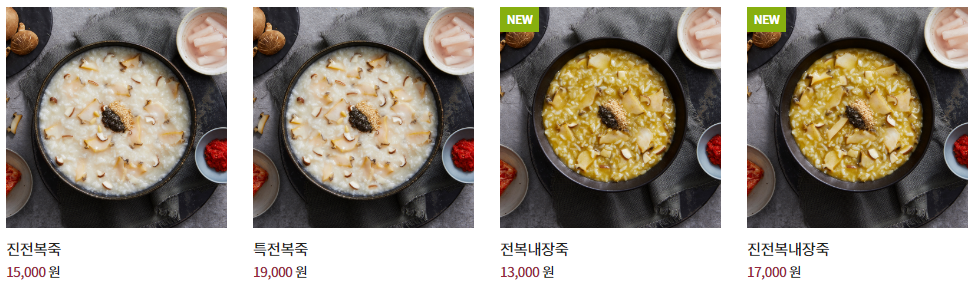 | 진전복죽 | 특전복죽 | 전복내장죽 | 진전복내장죽 |