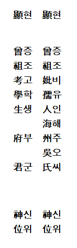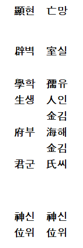 - 생전에 벼슬을 했을 경우 學生(학생)대신 벼슬의 직위(理事官, 道知事 등)를 씀