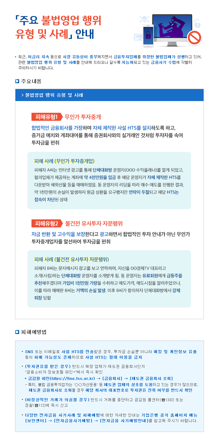 무인가 주식 투자 중개 및 불건전 유사투자 자문행위 피해 사례 안내
