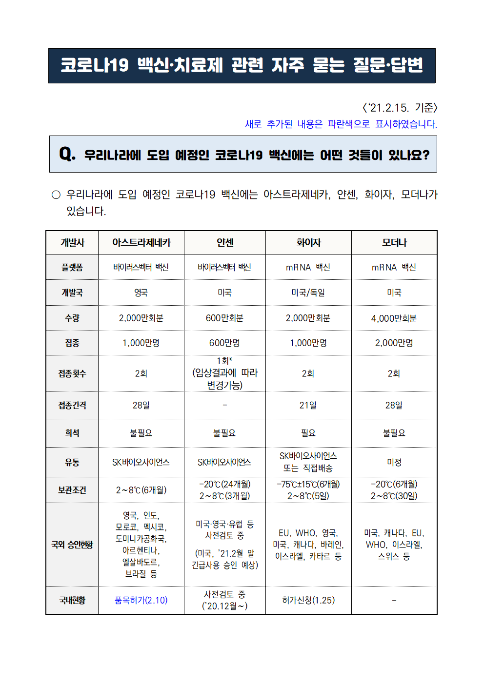 코로나19 백신·치료제 관련 자주 묻는 질문·답변