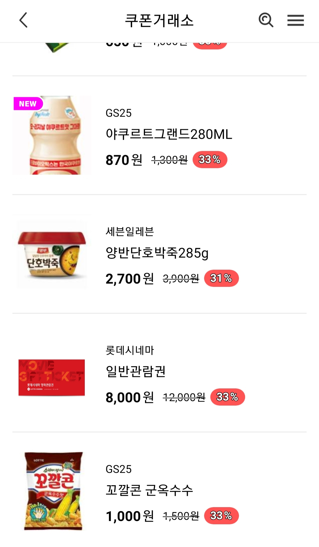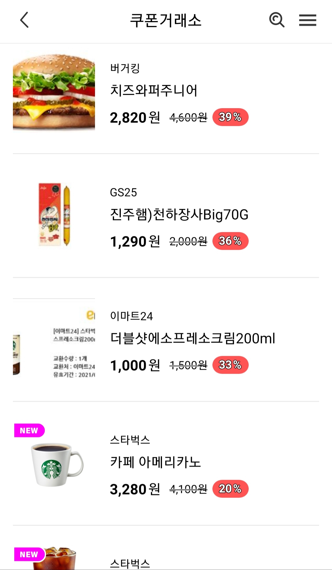 쿠폰 거래는 우측 상단 펼침 메뉴를 누른 뒤 전체메뉴에서 찾아갈 수 있습니다.