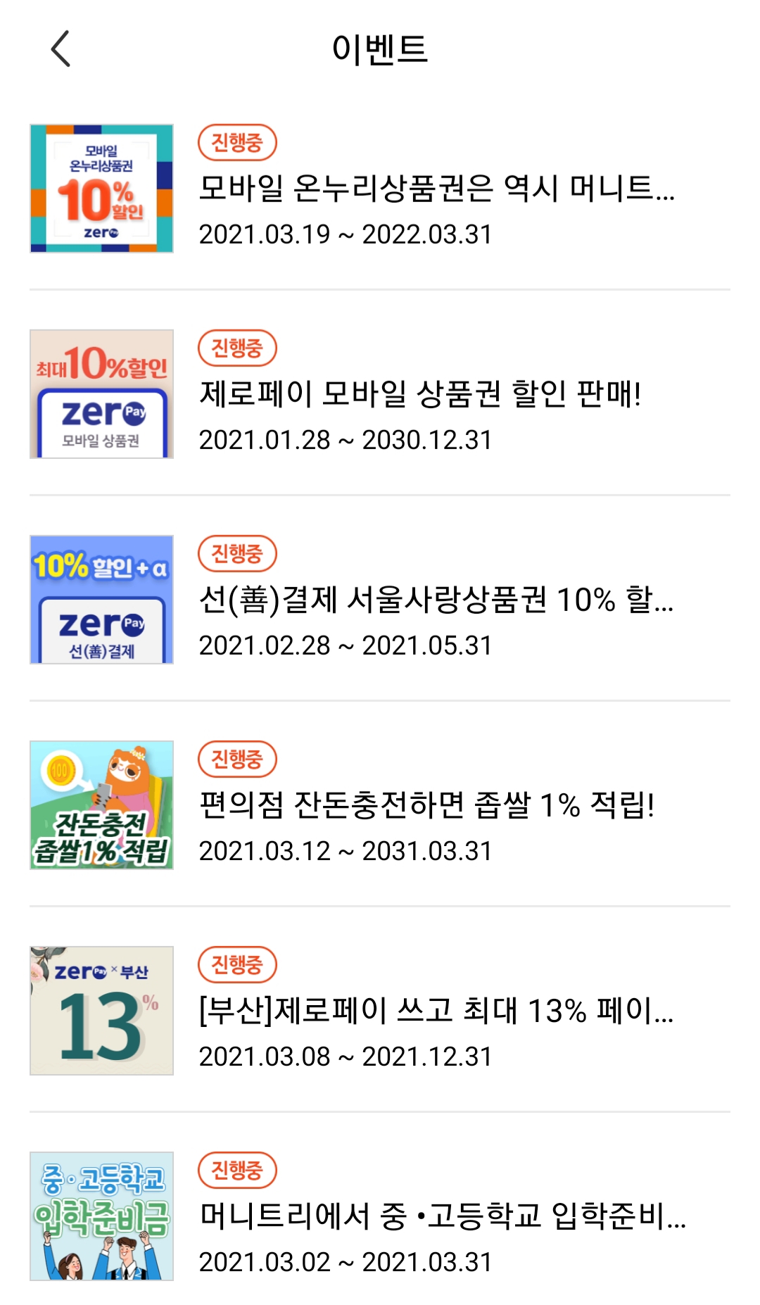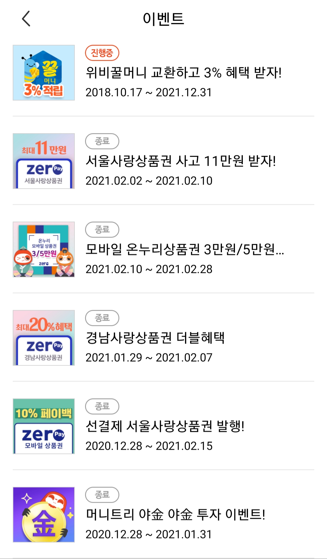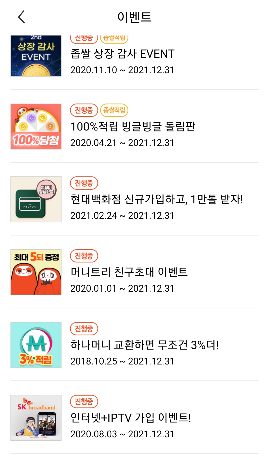 아래와 같이 다양한 이벤트를 진행 중입니다. 종료된 것도 있네요.
