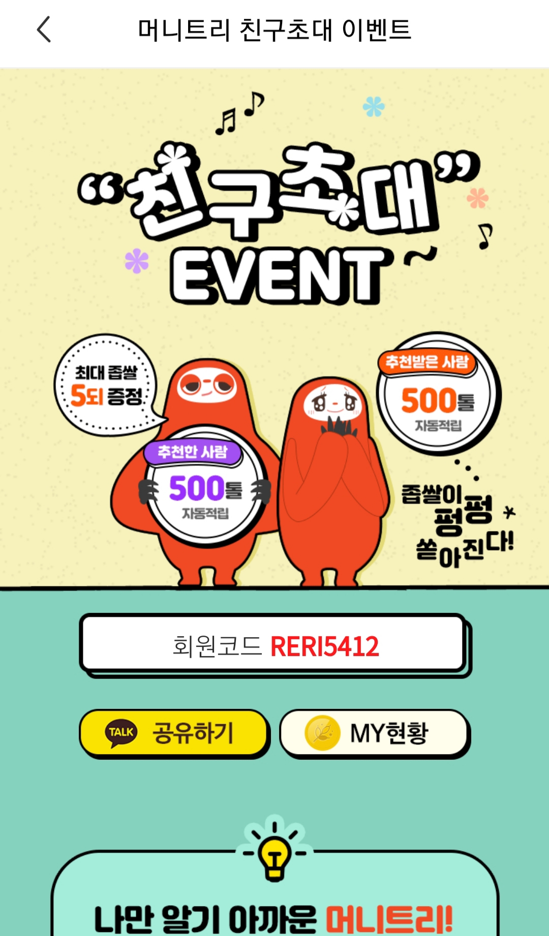 머니트리 좁쌀 추천 코드 'RERI5412' 고팍스 추천 아이디 'Y8PVWR'