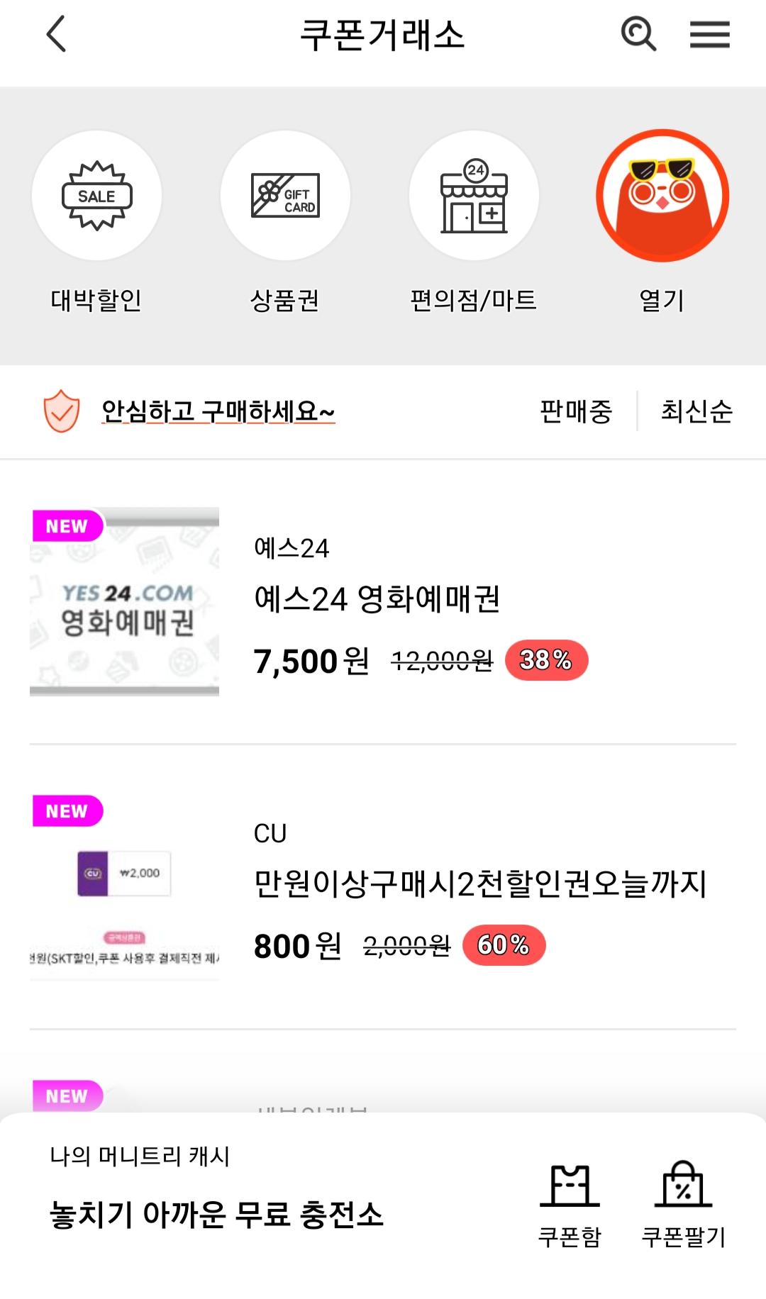 구글플레이나 앱스토어에서 머니트리를 다운 받으시면 아래와 같은 앱이 열립니다. 머니트리 앱은 대중성이 높고 이미 잘 알려진 앱입니다. 주로 포인트 교환 및 할인을 받거나 쿠폰을 사고 파는 곳인데 좁쌀과 관계없는 분들도 많이 사용하고 있습니다.