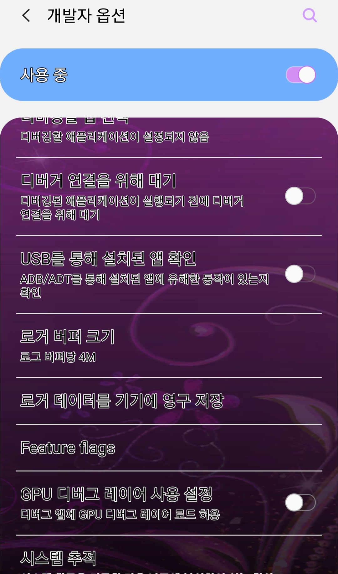 4. 다시 설정으로 가서 하단의 개발자 옵션 클릭
