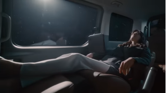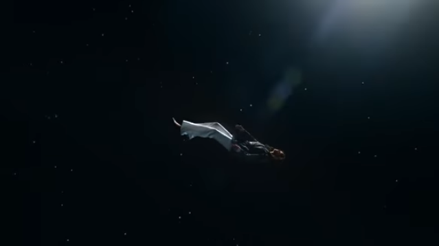 영상은 빛나는 도시와 함께 우주 공간에 떠있는 사람이 등장합니다. 편안하게 유영하는 모습이죠.