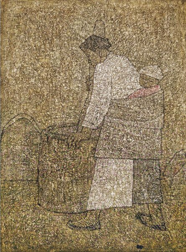 박수근. '절구질 하는 여인', 1954년, 130x97cm)