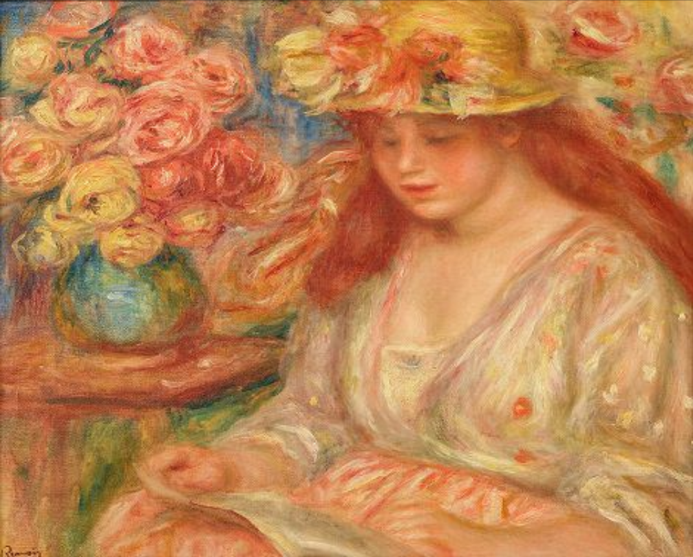 피에르 오쉬스트 르누아르 '책 읽는 여인 La Lecture', 1890년대, 44x55cm