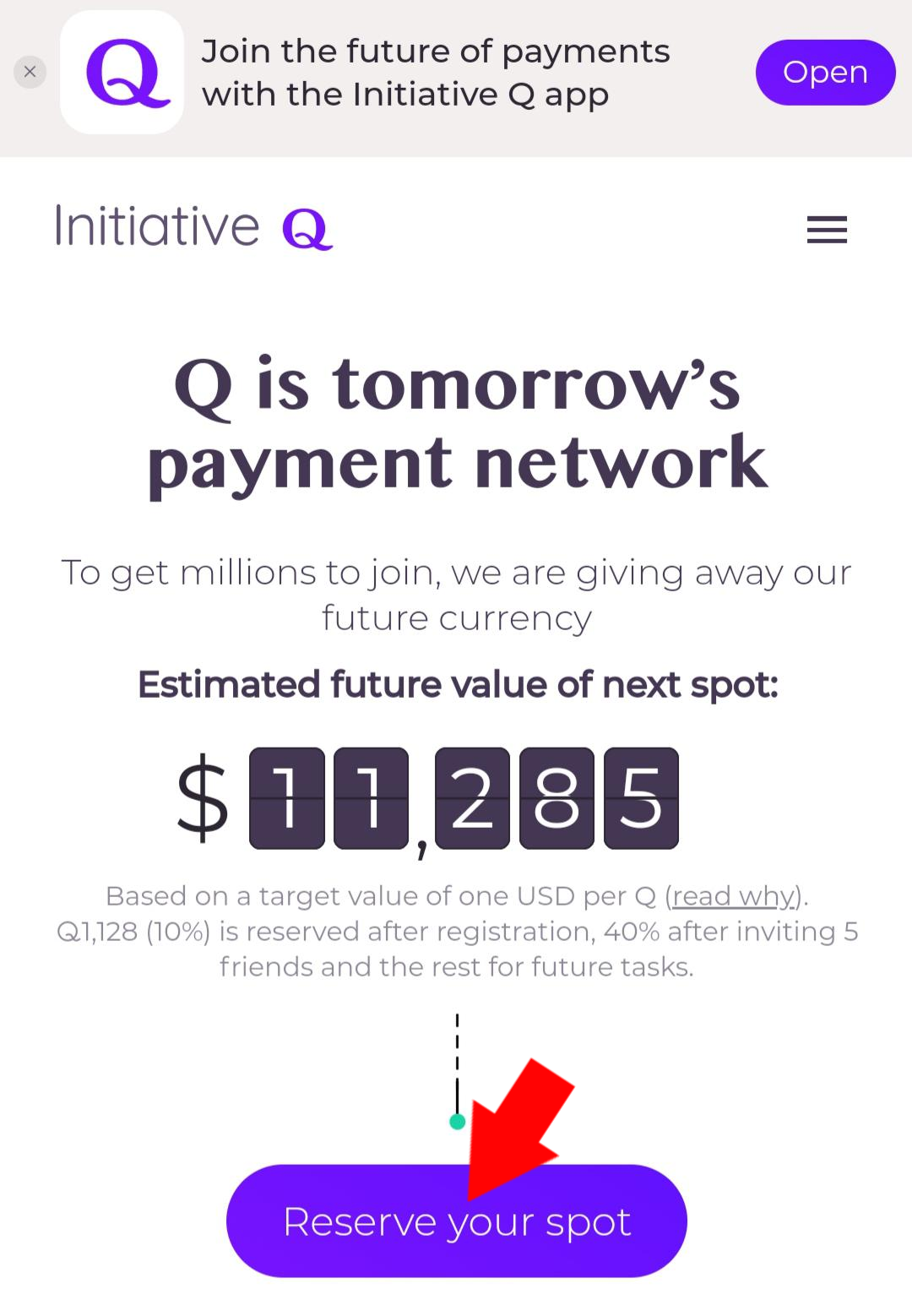Initiative Q 지불 네트워크에 참여하십시오. 무료 Q를 예약하십시오.