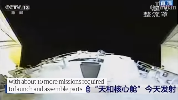 '창정 5B' 로켓이 예정된 지구 궤도에 우주정거장 '텐허'의 모듈을 올려놓았다고 공식 발표했다.