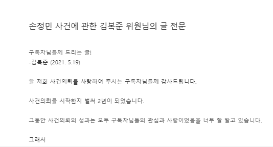 손정민 사건에 관한 김복준 위원님의 글 전문