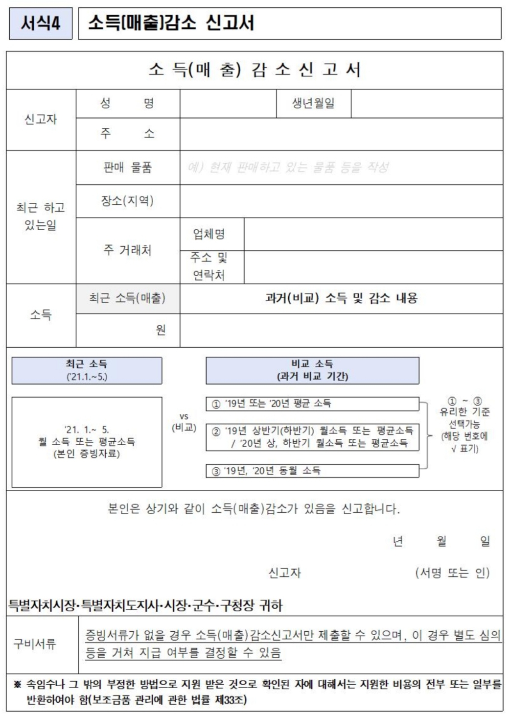 소득(매출)감소 신고서
