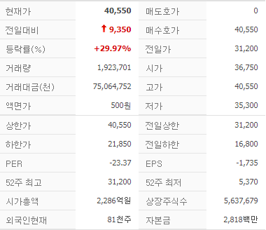 52주 최고 l 최저 | 31,200 l 5,370 |