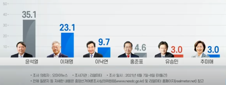 | 윤석열 | 이재명 | 이낙연 | 홍준표 | 유승민 | 추미애 |
