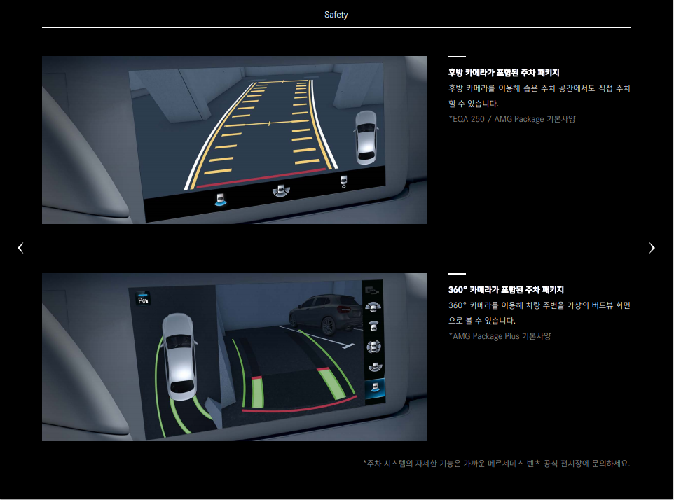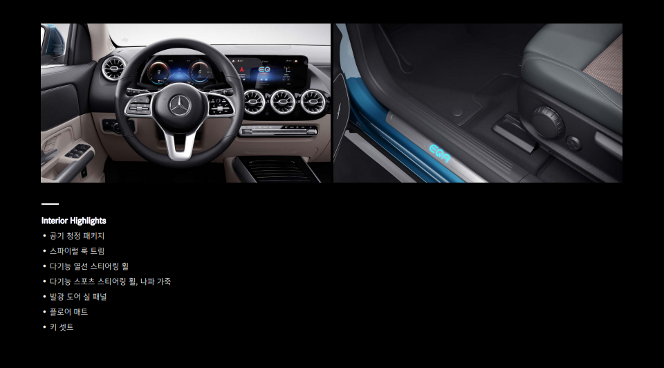 - 앞좌석 열선 시트 : EQA 250 / AMG Package 기본사양