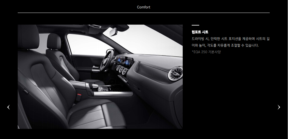 - 앞좌석 열선 시트 : EQA 250 / AMG Package 기본사양