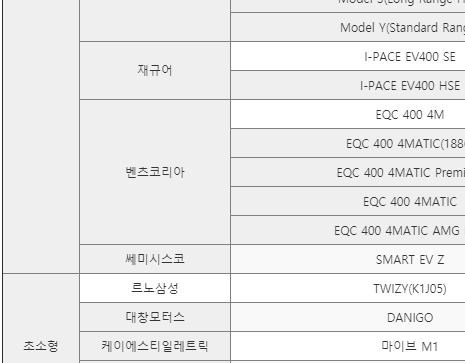 | 초소형 | 르노삼성 | TWIZY(K1J05) | 400 |