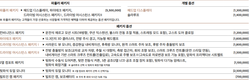 ※ 선택 품목의 가격은 세제 혜택(개별소비세 및 교육세 감면) 적용 전 가격입니다.