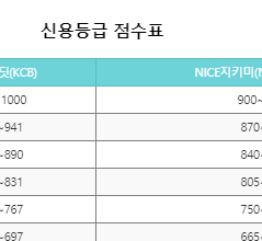 | 신용등급 | 올크레딧(KCB) | NICE지키미(NICE평가정보) |