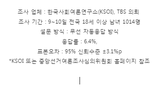 조사 업체 : 한국사회여론연구소(KSOI), TBS 의뢰