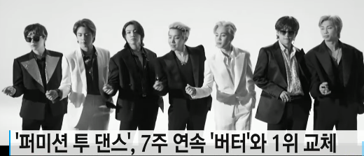 '퍼미션 투 댄스', 7주 연속 '버터'와 1위 교체