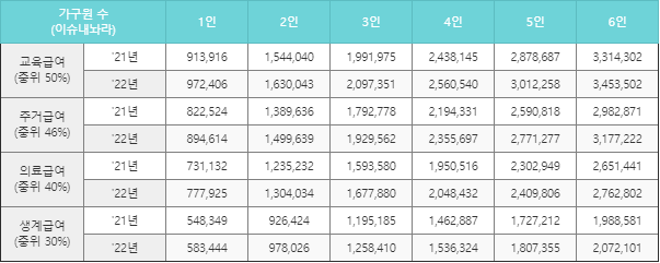 #2021 #2022 #교육급여 #주거급여 #의료급여 #생계급여