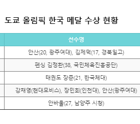 | 5 | 유도 66kg | 동 | 안바울(27, 남양주 시청) | 2연속 메달 |