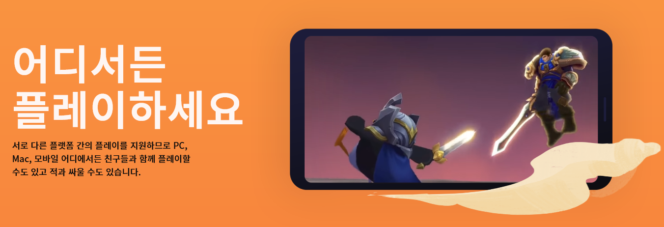 PC유저와 모바일 버전 유저가 함께 플레이를 할수 있다고 합니다. 친구는 컴퓨터로 게임을 하더라도 누워서 휴대폰으로 같이 게임을 즐길수 있다는 뜻이 되겠죠. TFT를 앞으로 E스포츠로도 발전 시킬 계획이 있다고 하네요.