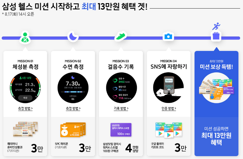 갤럭시 워치4 삼성 헬스 미션 이벤트
