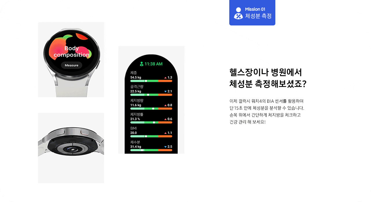 | 미션 1. 체성분 측정 | 미션 2. 수면 측정 |