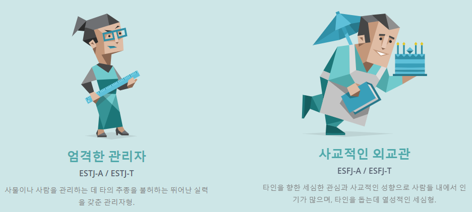 | 외향/판단 | ESTJ | ESFJ | ENFJ | ENTJ |