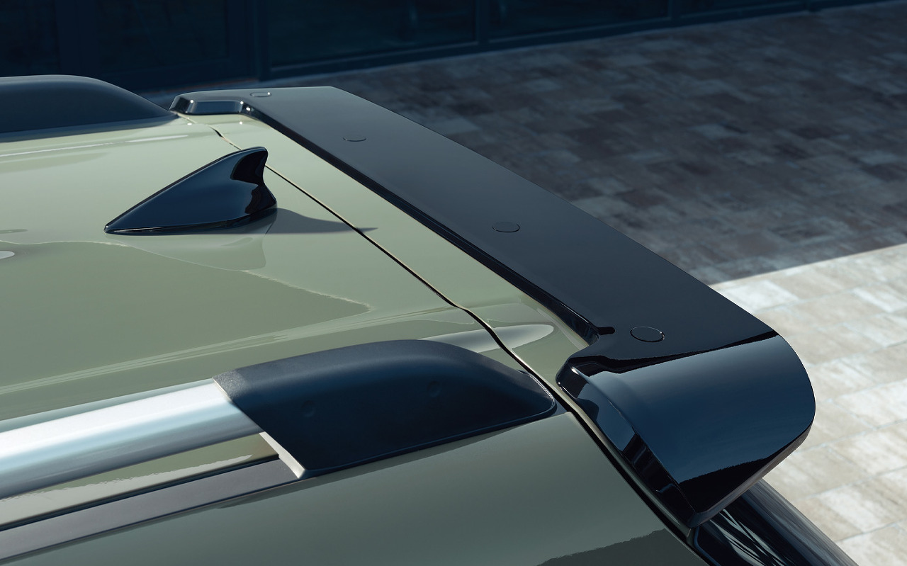 볼륨감이 돋보이는 휠 아치와 높은 지상고로 역동적인 느낌을 주는 옆모습, 미래지향적인 파라메트릭
