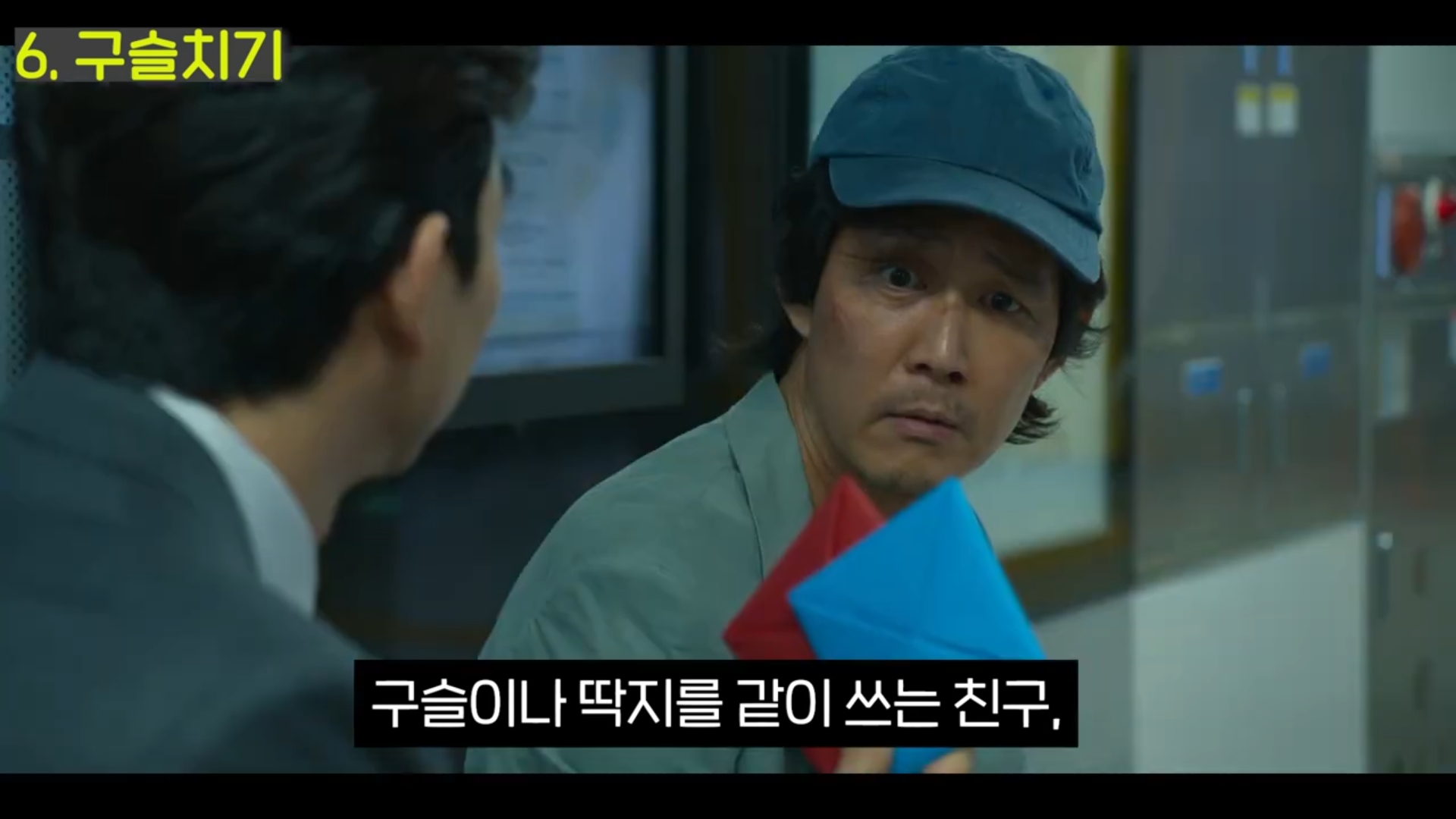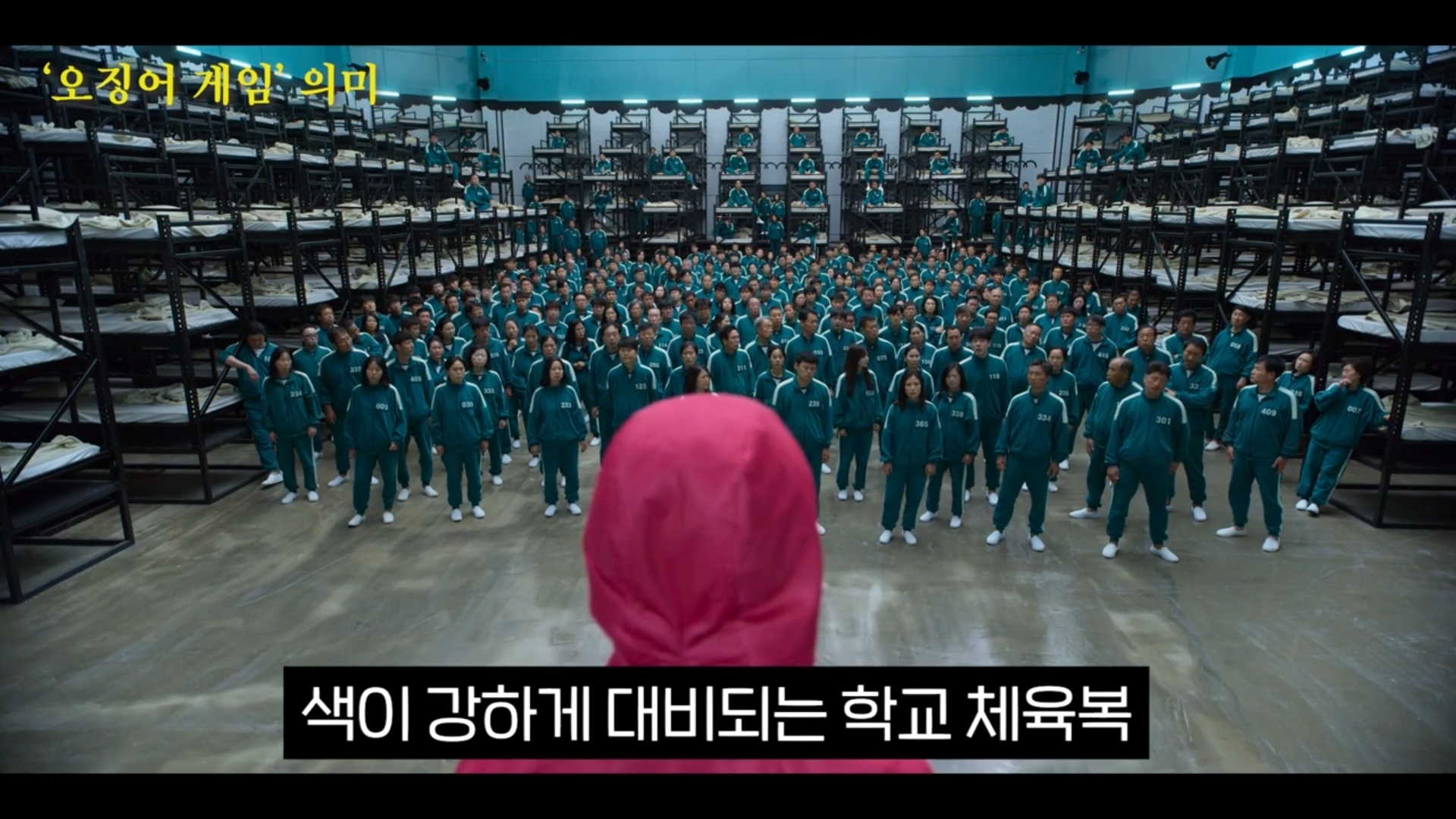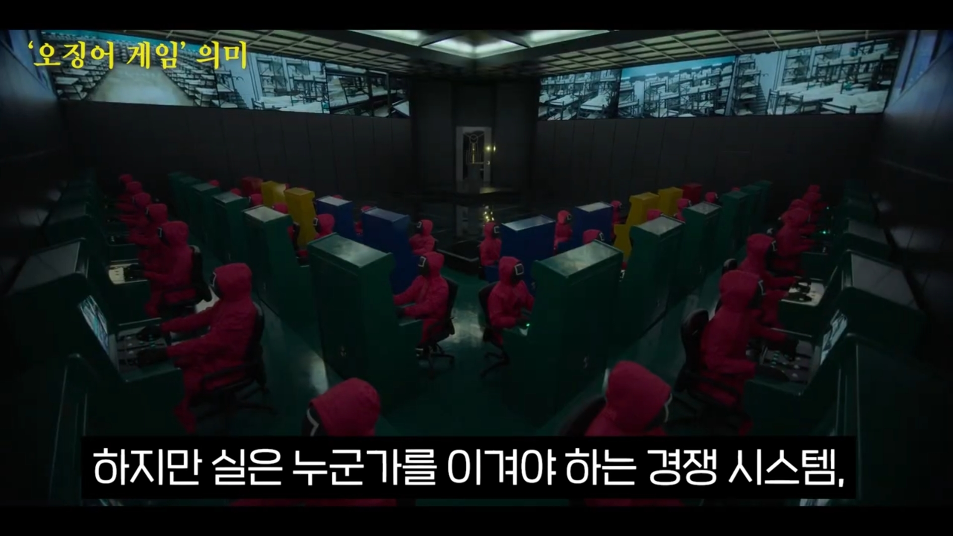 드디어 등장하는 마지막 드러난 여섯 번째 게임 '오징어 게임'은 좌우로 양분된 공격자와 방어자가 등장한다. 오징어 게임의 원리를 알면 같은 팀 모두가 이길 수 있는 방법이 존재한다는 것을 알 수 있다. 그러나 우리는 경쟁사회에서 누군가를 이기기 위해서는 상대를 밟고 일어서야 한다고 배웠다. 오징어 게임은 한 사람만 머리에 도달하면 모두가 이기는 게임이다.