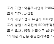 조사 방법 : 휴대전화 RDD(무작위 추출) 85%, 유선전화 RDD 15%. 최종 응답률은 3.9%