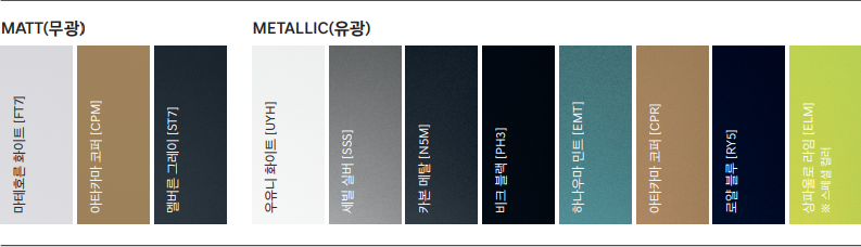 | 메탈릭 컬러(유광, 7종 중 선택) | [기본사양] |