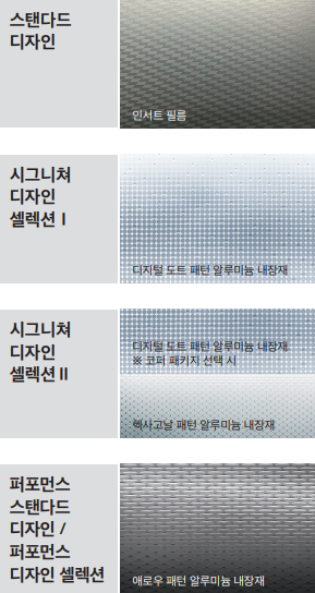 | 시그니쳐 디자인 셀렉션Ⅱ 디지털 도트 패턴 알루미늄 내장재 ※ 코퍼 패키지 선택 시 / 헥사고날 패턴 알루미늄 내장재 |