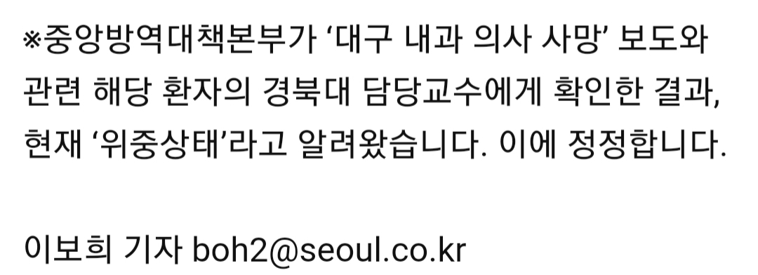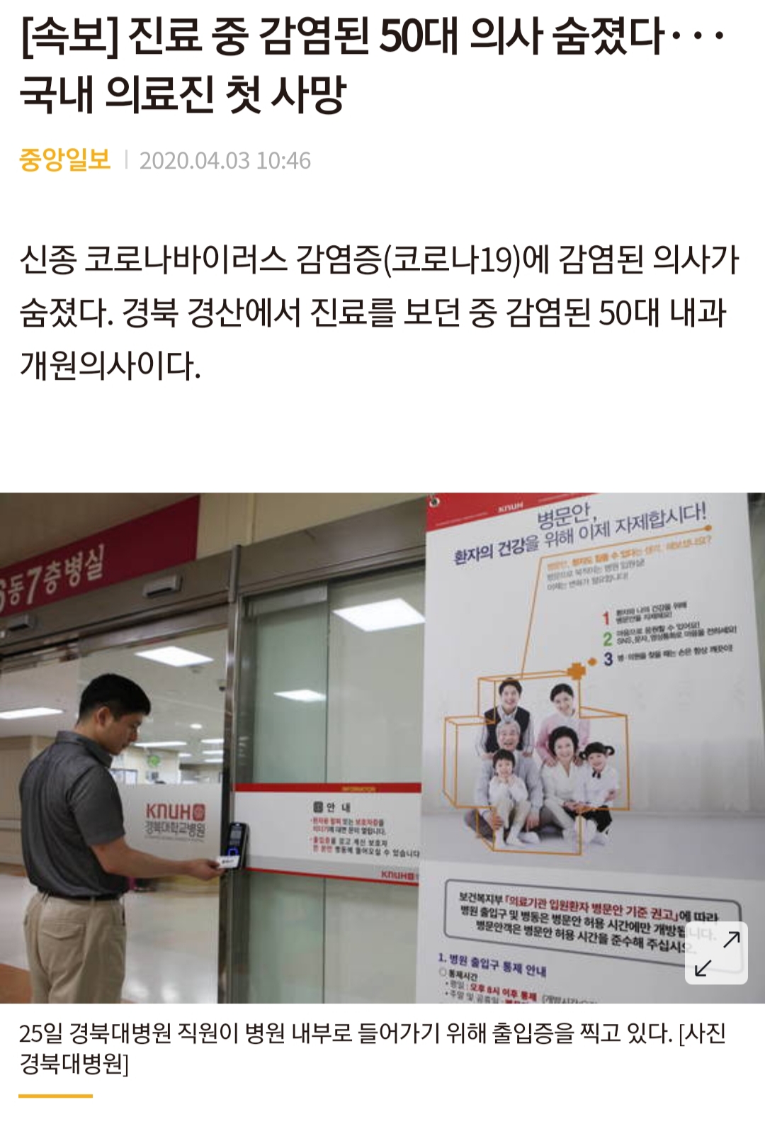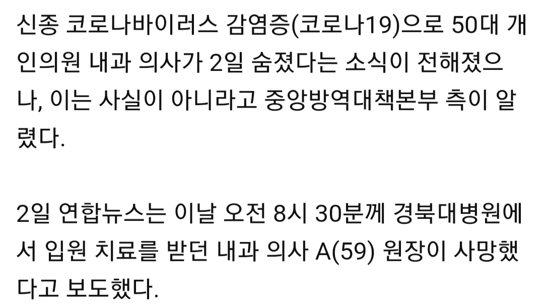 진료 중 코로나에 감염된 50대 의사가 숨졌다는 기사와 함께 국내 의료진이 첫 사망했다는 보도는 사실이 아닌 것으로 밝혀졌습니다.