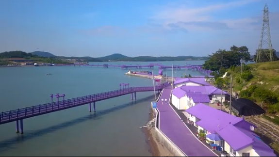 퍼플섬으로, 보라색 다리로 반월도와 안좌, 박지도가 서로 연결되어 있습니다.