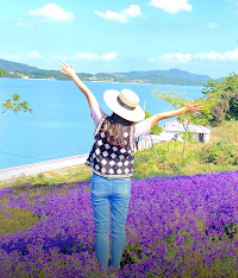 보라색 라벤더 공원에서, 꽃과보는 바다도 참 보기 좋아요 !