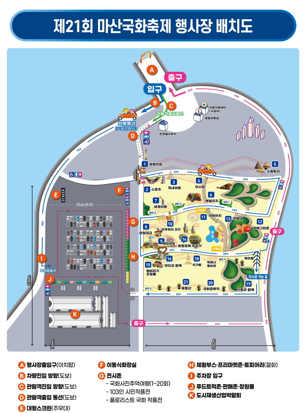 위치 : 행사장 부스, 돝섬, 창동·오동동, 부림·어시장, 주요도로변