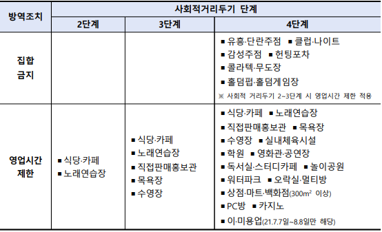 (예시) ▲면적당 인원 제한, ▲수용인원 제한, ▲시설 일부 사용 제한, ▲사적 모임 제한, ▲다중이용시설 기본 방역수칙 등