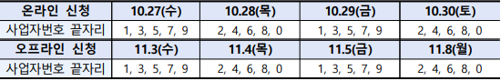 ◦ 보상 신청 첫 주에 사업자등록번호 끝자리에 따라 2부제 적용