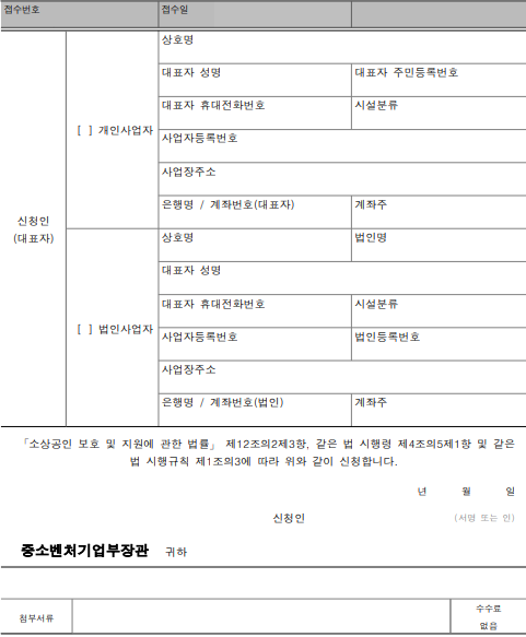 ■ 소상공인 보호 및 지원에 관한 법률 시행규칙 [별지 제1호서식]