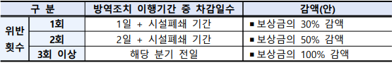 - 위반 횟수에 따라 일정비율(30%/50%/100%)만큼 보상금 감액