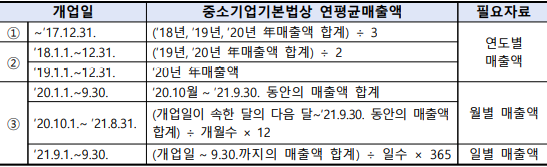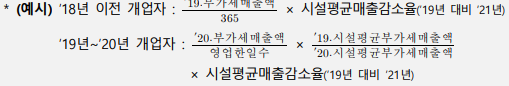 ☞ 개업일이 속한 달에 대해서는 ‘20년 동월 인프라매출액 활용